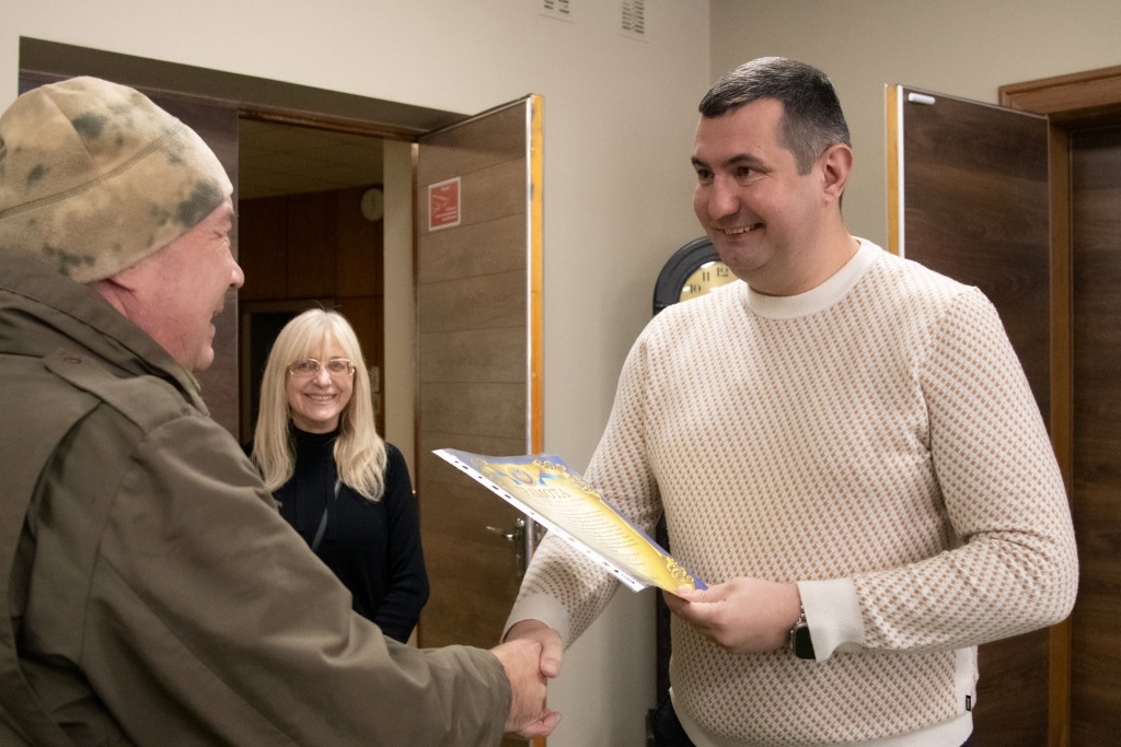 На знак вдячності за всебічну підтримку Володимир Лисковець від імені бійців та керівництва дивізіону передав голові обласної ради грамоту.