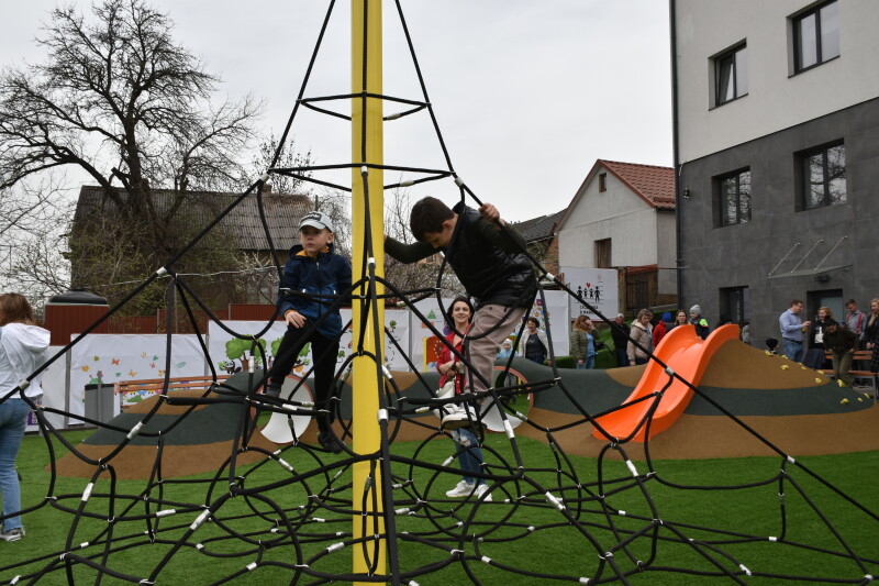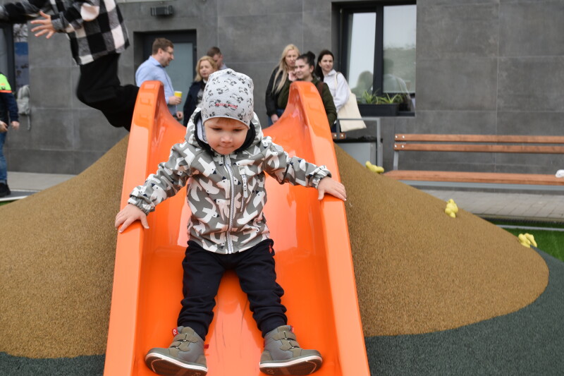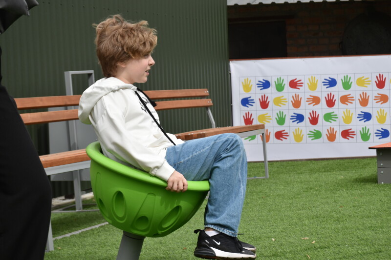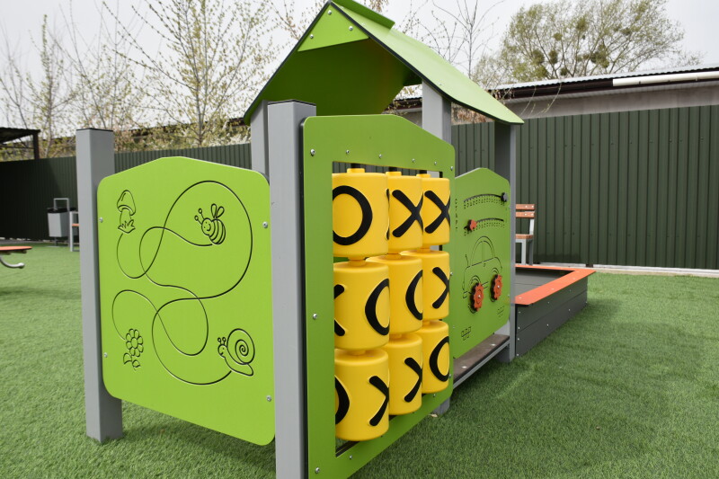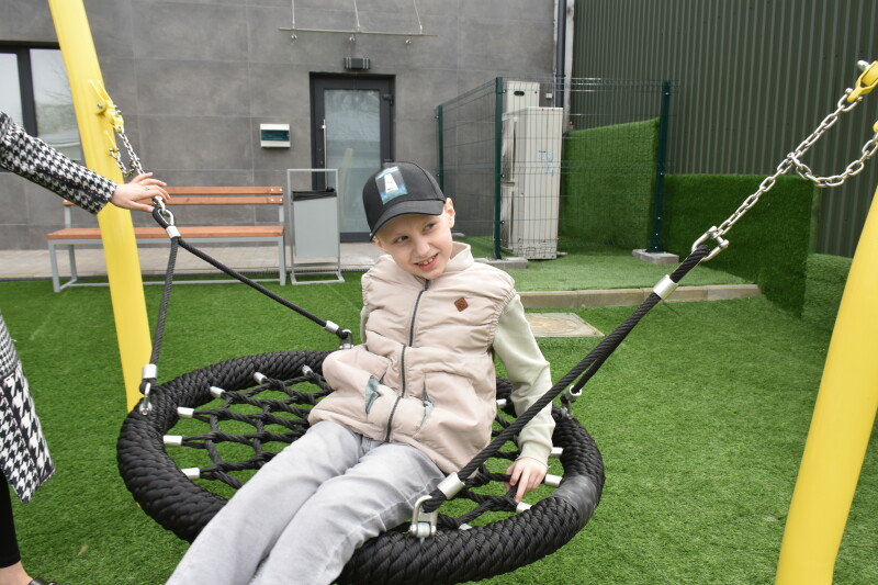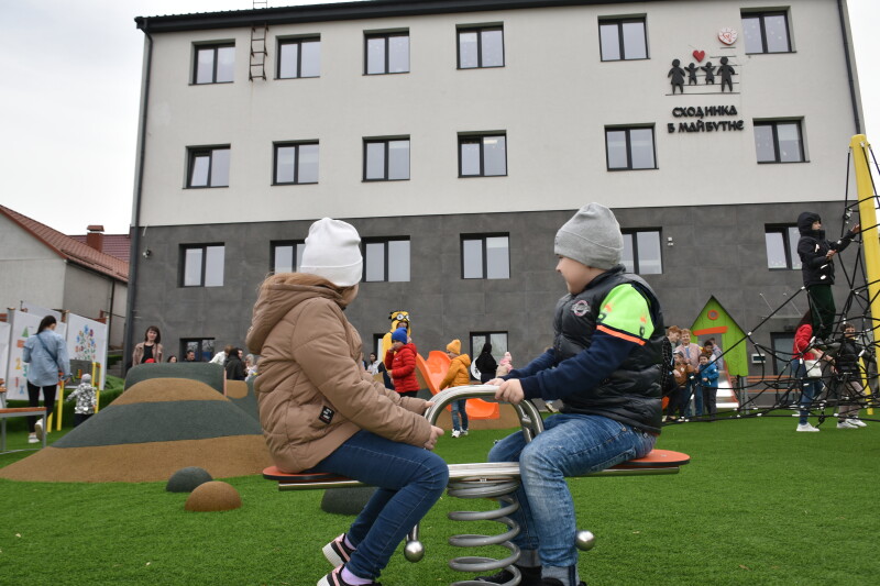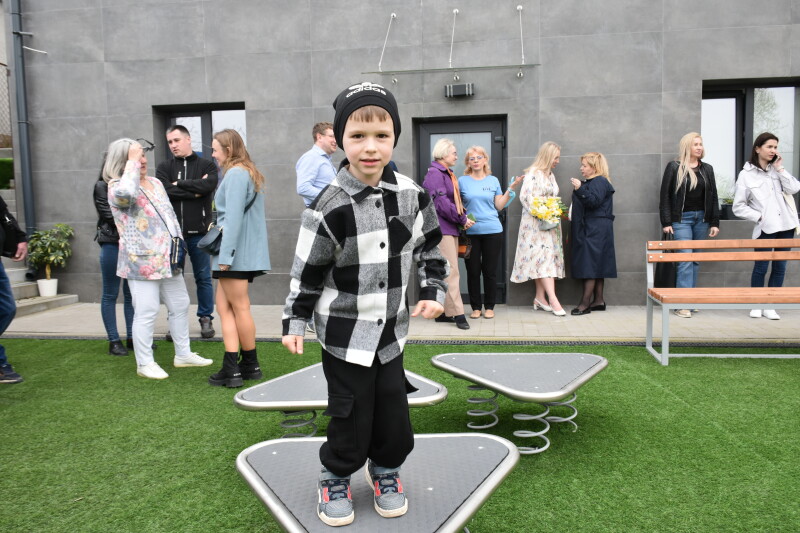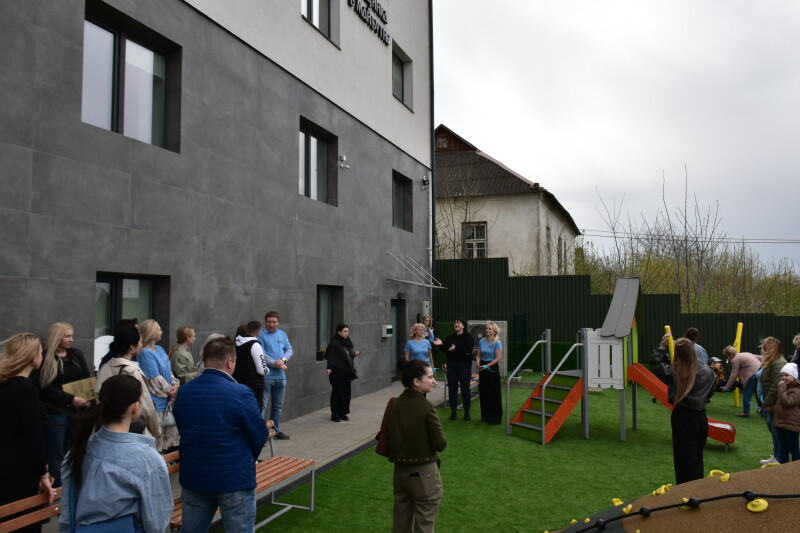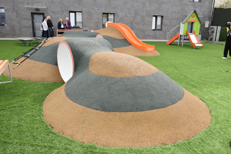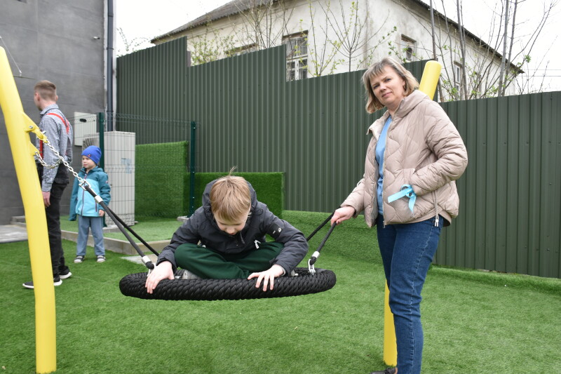 На території центру з’явився простір з сучасним ігровим обладнанням – гойдалка, гірки, сітка для лазіння, ігрові панелі, де дітлахи зможуть розвивати дрібну моторику рук, спритність, увагу, моторне планування, логічне мислення та формувати багато інших навиків. Ігровий простір безпечний та спланований для занять, дозвілля та насичення сенсорних потреб вихованців з особливими освітніми потребами, які відвідують центр.
