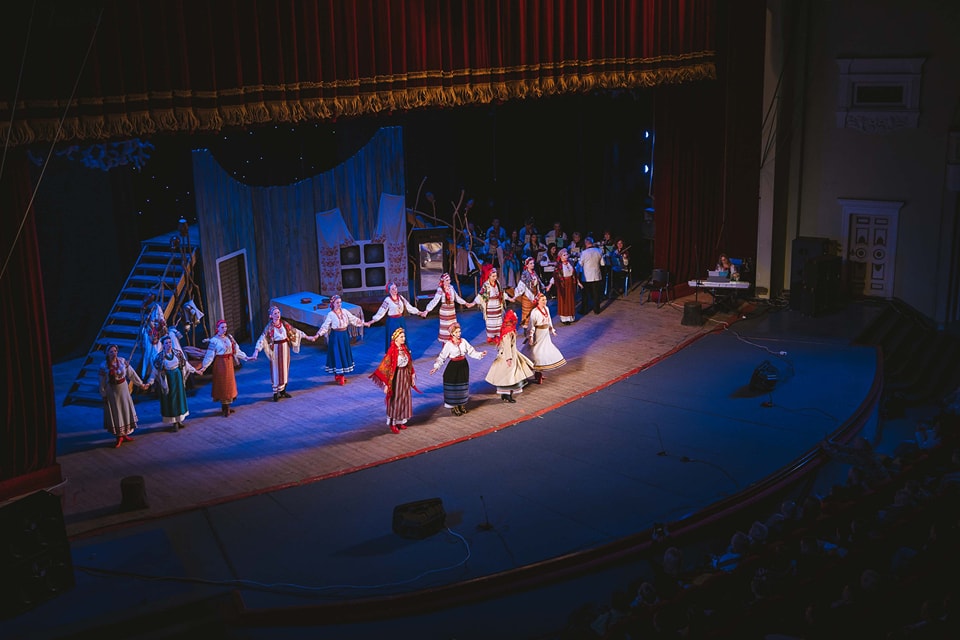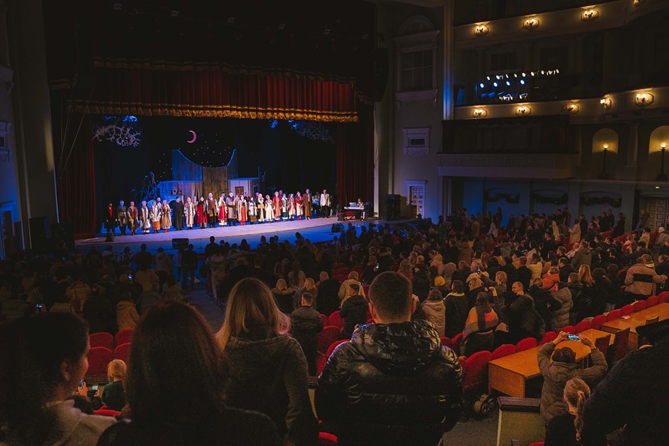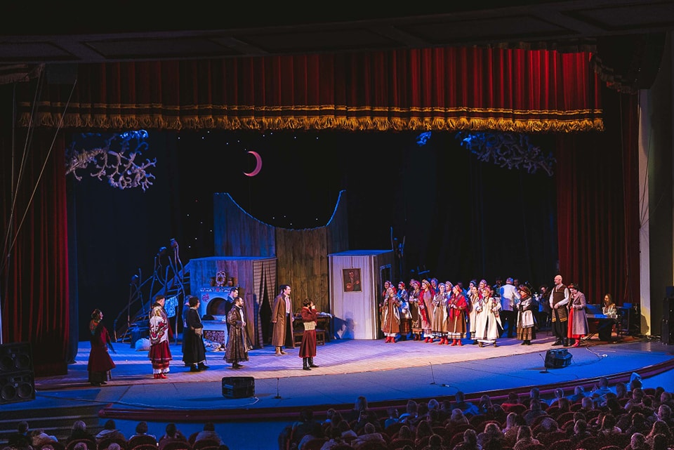 На найбільшій українській сцені – у Жовтневому палаці – академічний обласний музично-драматичний театр імені Тараса Шевченка презентував «Різдвяну ніч», виставу за мотивами Миколи Гоголя.