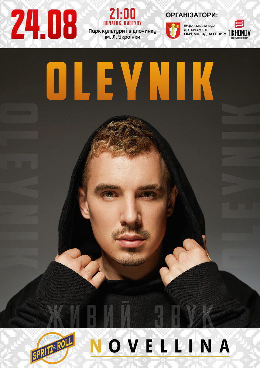 У Луцьку 24-го серпня “OLEYNIK” презентує як нові, так і вже всіма улюблені та популярні пісні, на сцені у Центральному парку культури та відпочинку ім. Л. Українки о 21:00.