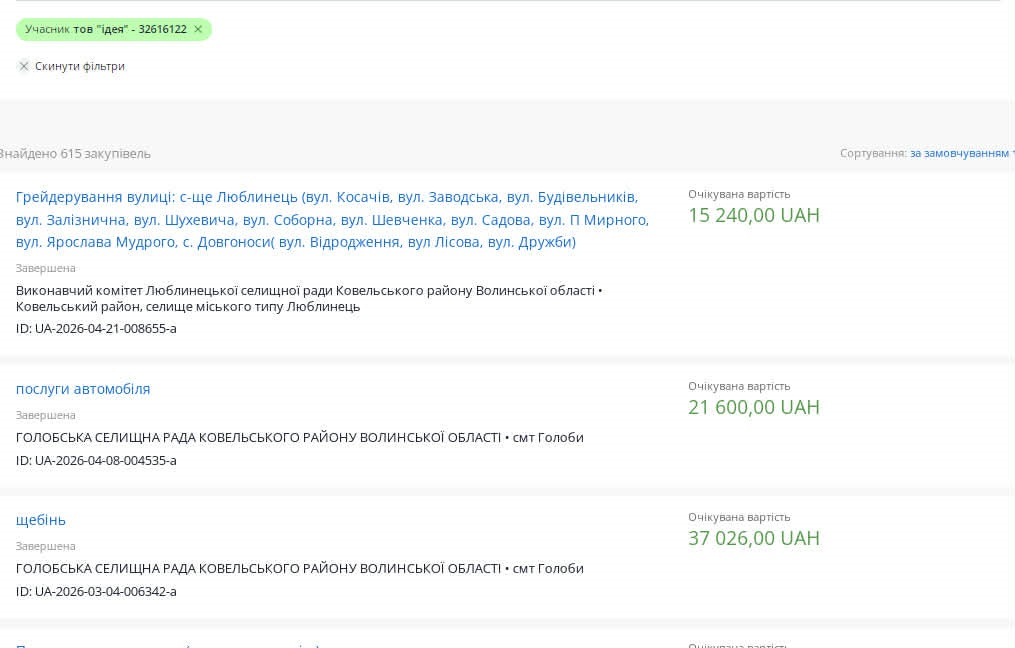 Уже наприкінці 2025 року, якраз після рішення Антимонопольного комітету, ТОВ «Ідея» активно почало отримувати підряди через прямі угоди.