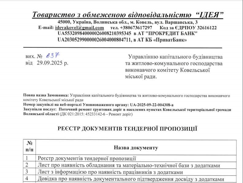 Ще одна деталь — оформлення документів. Подані тендерні пропозиції ТОВ «АВТОПОРТ КОВЕЛЬ» мають схожі риси з документами, які раніше подавало ТОВ «Ідея».