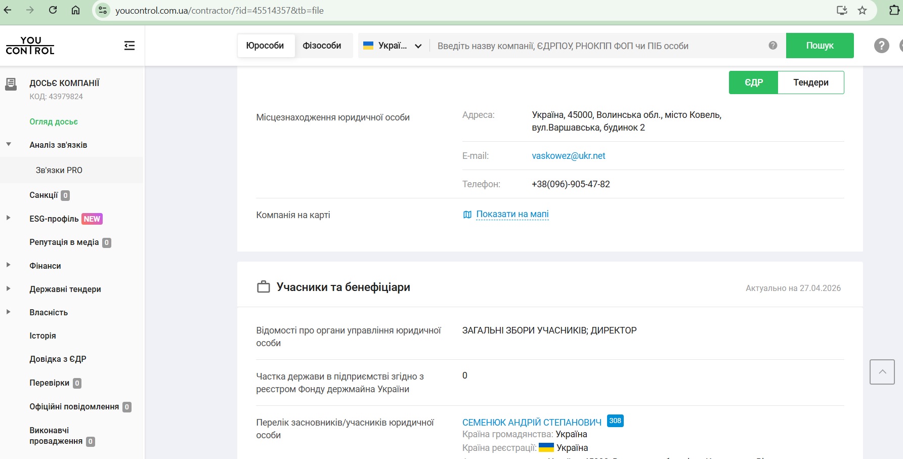 На питання ж, скільки в них працівників, він сказав, що достатньо. Зауважимо, що за даними «You control», станом на 31.12.2025 року було лише два працівники.