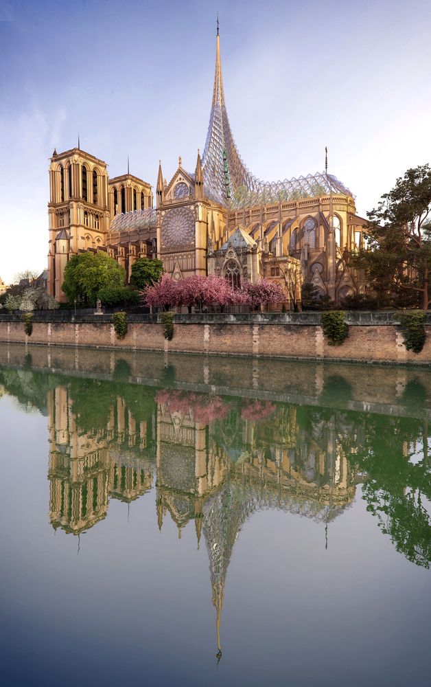 Свою концепцію відбудови постраждалого внаслідок пожежі даху Собору Паризької Богоматері запропонувало паризьке архітектурне бюро “Vincent Callebaut Architectures”. Згідно з проектом, дах та шпиль собору виготовлять зі скла, дуба й вуглецевого волокна.