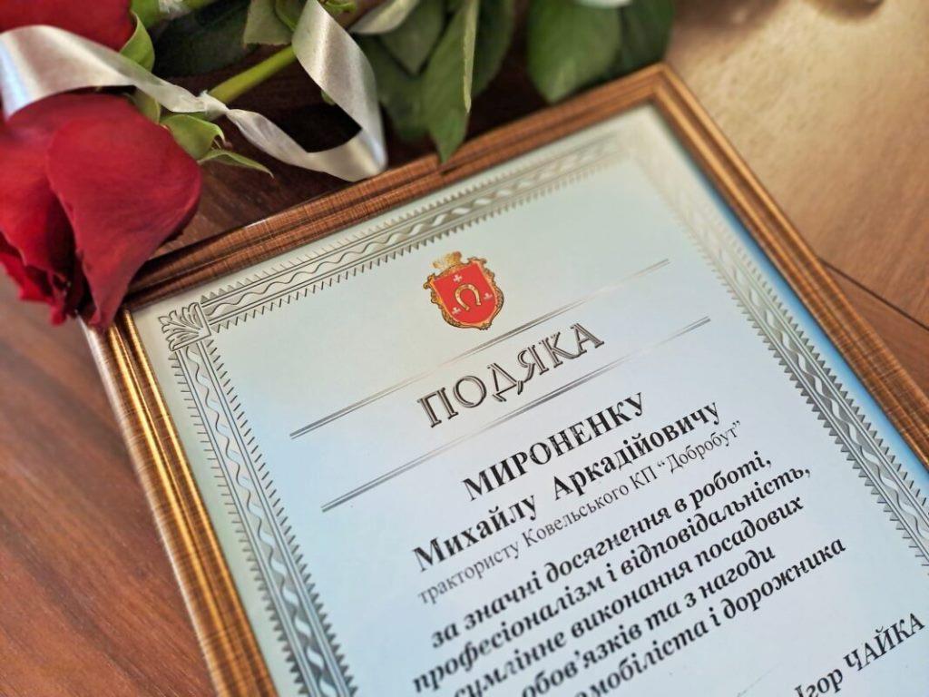 За значні досягнення в роботі, професіоналізм і відповідальність, сумлінне виконання посадових обов’язків та з нагоди Дня автомобіліста і дорожника Ігор Чайка та Тарас Яковлев вручили Подяки міського голови представникам галузі. Нагородами відзначили: