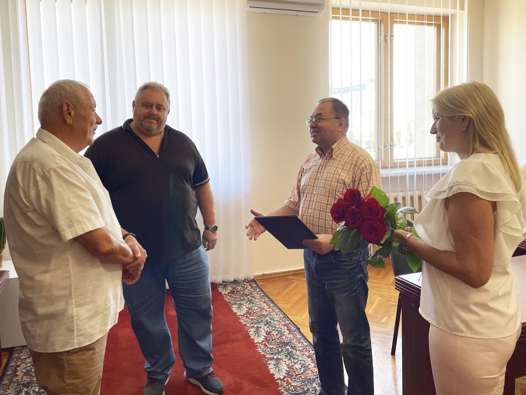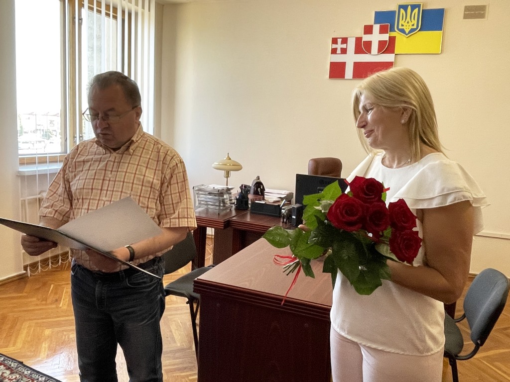 За дорученням голови обласної ради Григорія Недопада заслужену відзнаку багаторічному керівнику обласного будинку дитини вручив заступник голови Григорій Пустовіт. До привітань також доєдналися заступник начальника управління охорони здоров’я ОВА Валерій Руцький та начальниця відділу з питань гуманітарної та соціально-культурної сфери апарату облради Галина Карнаухова.