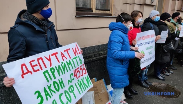 Біля Верховної Ради близько 20 активістів вимагали від депутатів легалізувати застосування марихуани у медичних цілях.