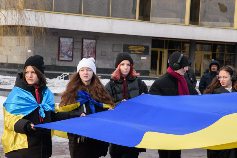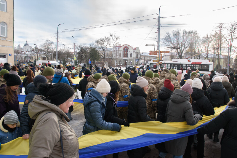 Із нагоди Дня Соборності України у Луцьку відбулася патріотична акція «Ланцюг єднання». У центрі міста, на Театральному майдані, зібралися близько тисячі жителів громади, щоб розгорнути 200-метровий національний прапор і пройти з ним вулицею Лесі Українки до площі Злуки.