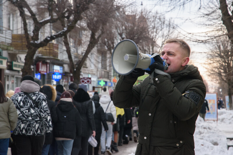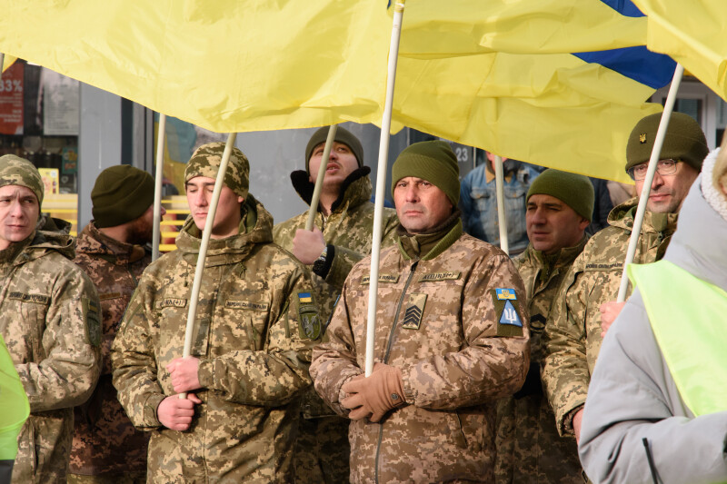 Акція розпочалася із віче на Театральному майдані. До присутніх звернувся радник Луцького міського голови з питань роботи з ветеранами Тарас Сасовський.