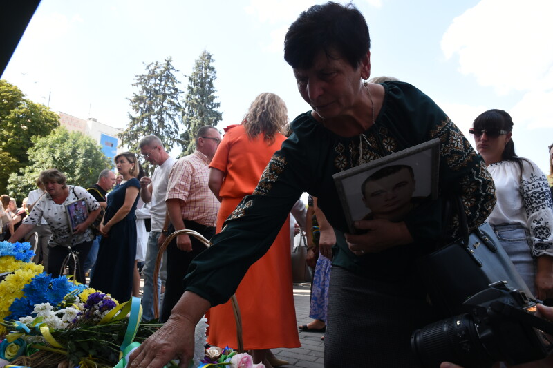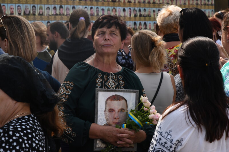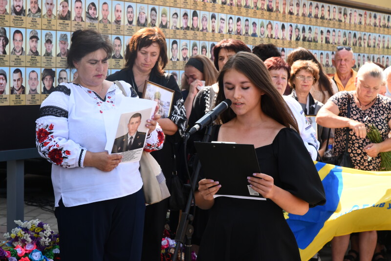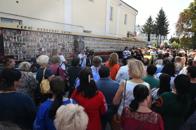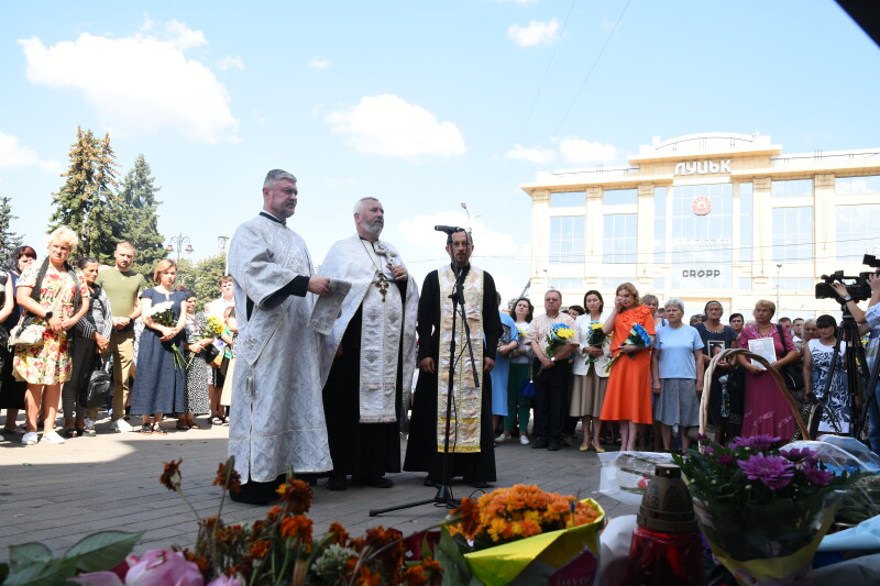 До пам’ятного фотостенду загиблих Героїв жінки взяли з собою квіти та портрети своїх рідних. Пам’ять про них вшанували хвилиною мовчання, заупокійним богослужінням та покладанням квітів. До акції долучилася заступник Луцького міського голови Ірина Чебелюк.