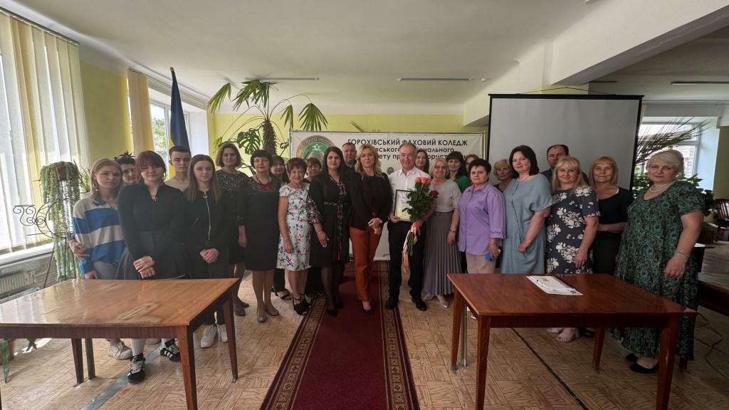 Тетяна Павлова-Багрійчук вручила Подяку голови Луцької районної ради за вагомий особистий внесок у забезпечення підготовки фахівців у сфері природокористування, багаторічну сумлінну працю, високий професіоналізм та з нагоди особистого ювілею Жельчику Олегу Миколайовичу – директору Відокремленого структурного підрозділу «Горохівський фаховий коледж Львівського національного університету природокористування».