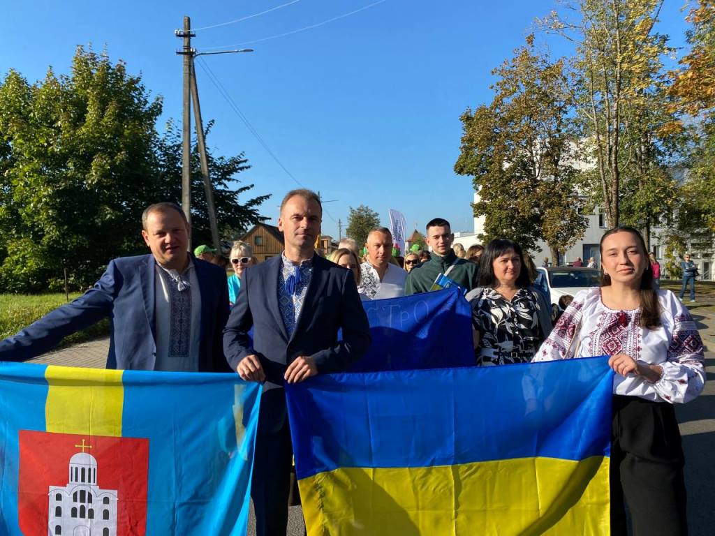 Володимирська делегація, до складу якої також увійшли депутат міської ради Андрій Гнатюк та головний спеціаліст відділу міжнародної діяльності та туризму Анна Кравчук, взяли участь у святковій ході вулицями міста, тримаючи у руках державний стяг та прапор Володимира.
