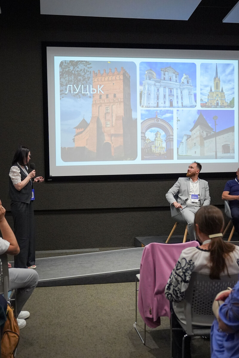 Анна Вінцюк презентувала на заході досвід реалізації міжнародних проєктів у Луцькій громаді та розповіла про співпрацю з міжнародними партнерами.