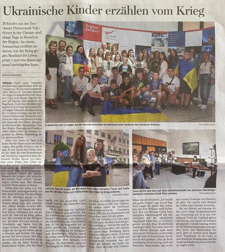 Також брали участь у сімейному спортивному святі, відпочивали на природі, купались у водоймі та розважались. А ще володимирські дітлахи стали зірками місцевої преси – про їхній візит до Цвікау написали у газеті, відзняли сюжет на телебаченні, а ще записали інтерв’ю на радіо.