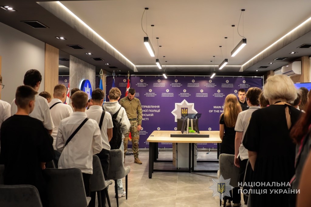 У День знань поліцейські організували імпровізований день відкритих дверей та екскурсію Головним управлінням для учнів однієї з луцьких шкіл.