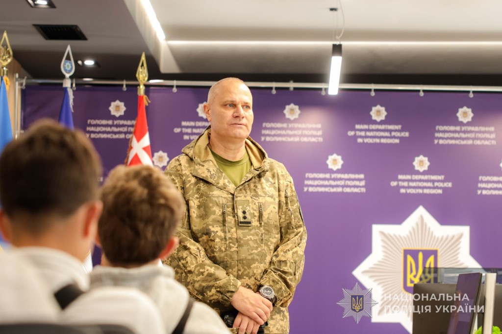 Офіцер ЗСУ та нині радник начальника ГУНП з питань ветеранської політики Ігор Дрючан наголосив школярам, що війна розпочалася у 2014. Він пригадав ті події та поділився власними спогадами, зокрема, про складні сторінки в історії – Іловайський котел й Дебальцеве. Тож закликав памʼятати тих, хто ціною власного життя захищав та захищає нас нині. Також поділився секретами роботи в розвідці однієї з бригад.