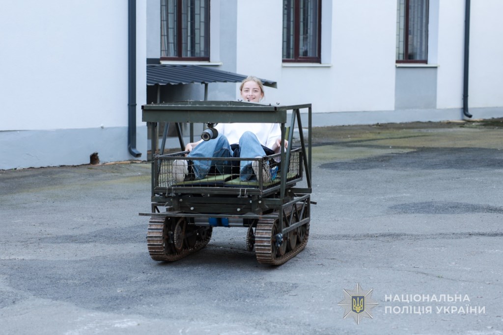 Бійці стрілецького батальйону ознайомили школярів із наземним роботизованим комплексом, який може доставляти їжу на позиції та забирати звідти поранених. Також на подвірʼї були представлені й броньовані автомобілі.
