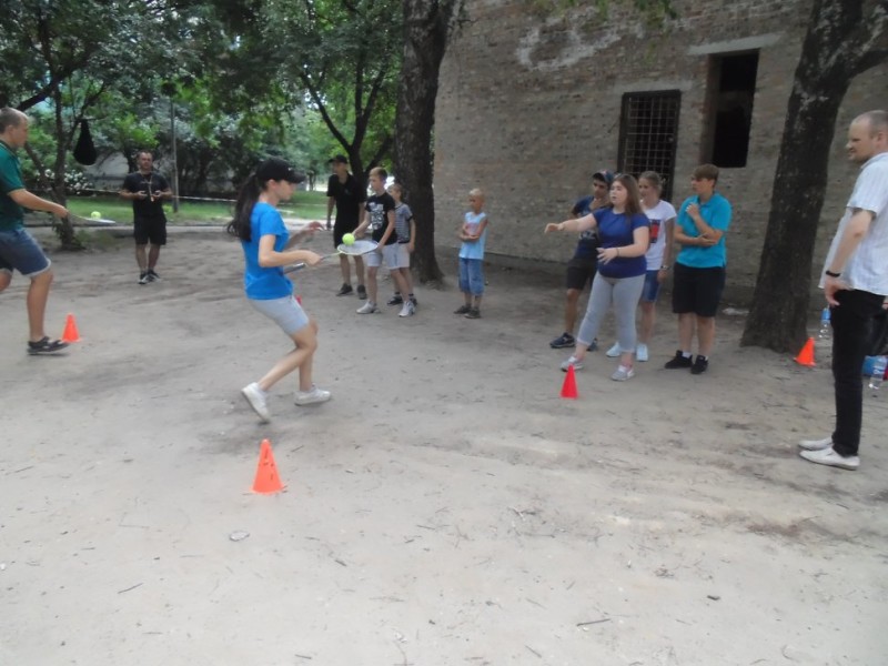 Спортивно-розважальна програма заходу включала: змагання з фризбі, метання набивного м’яча на дальність. Також всі охочі мали змогу позмагатись в естафетах: «Флорбол», «З баскетбольним м’ячем», «Перенеси кульку». Та найцікавішою була комбінована естафета, де окрім різних перешкод потрібно було пролізти крізь тунель. Намагаючись випередити своїх суперників, діти старанно виконували всі завдання.