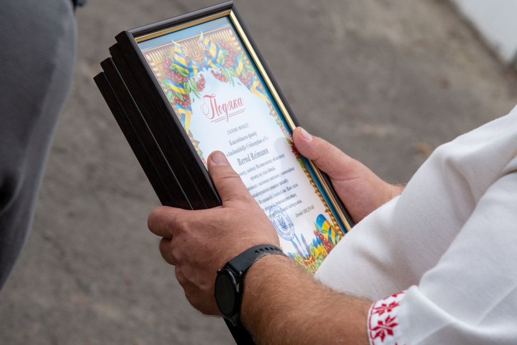 На знак поваги та щирої вдячності німецьким благодійникам голова обласної ради Григорій Недопад відзначив керівників фонду подяками та вручив пам’ятні подарунки із символікою Волинської області.