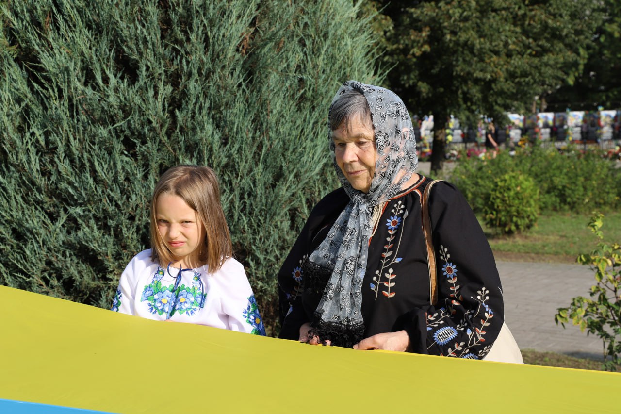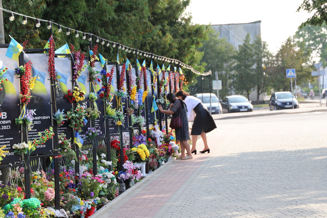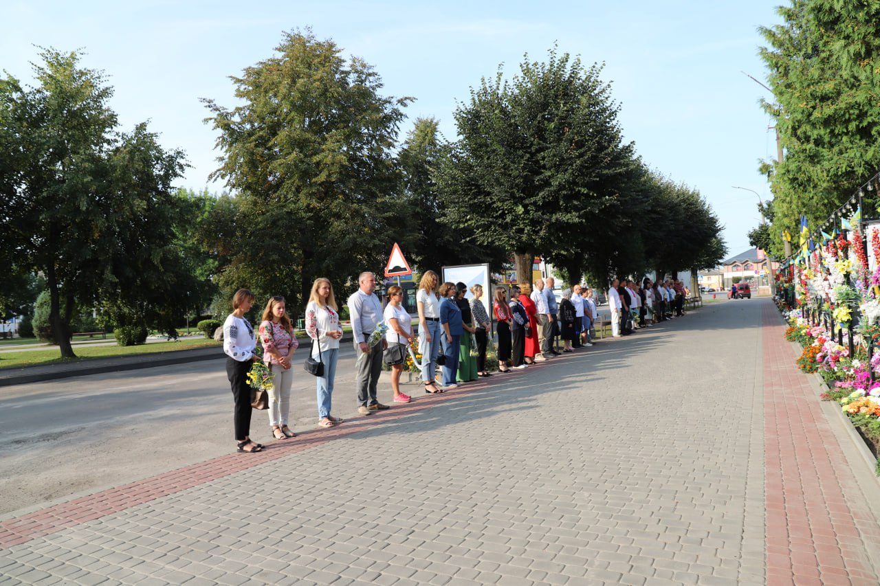 “З вдячністю і скорботою, схиливши голови перед світлою пам’яттю своїх земляків-Героїв поклали квіти до меморіалу на Алеї Слави. На всю площу, перед адмінбудівлею, з промовистою назвою «Незалежності» присутні розгорнули синьо-жовте національне знамено з вірою в перемогу і світле майбутнє нашої держави.