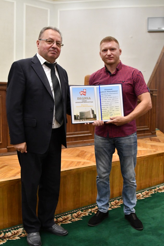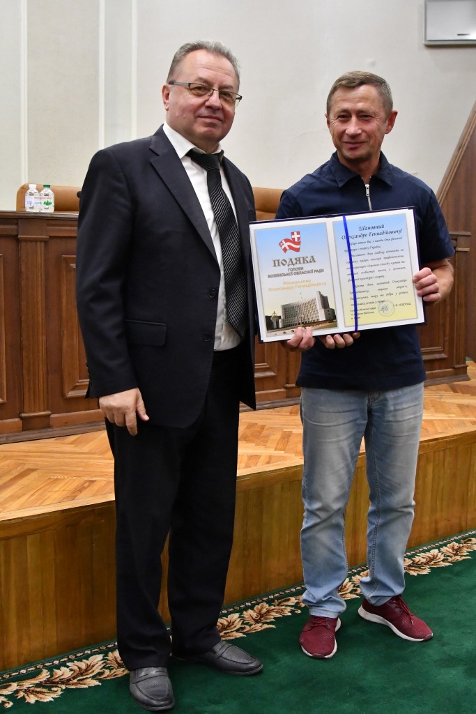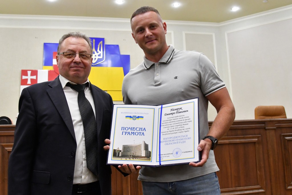За зайняті призові місця на ХІІ Всесвітніх іграх з неолімпійських видів спорту Почесною грамотою обласної ради Григорій Пустовіт нагородив Заслуженого майстра спорту України з веслування на човнах «Дракон» Віктора Свиридюка, таку ж відзнаку він вручив Заслуженому тренеру України з веслування на човнах «Дракон» Дмитру Назаруку, за майстерну підготовку чемпіонів та призерів ХІІ Всесвітніх ігор з неолімпійських видів спорту відзнаено Сергія Семенюка та Віктора Свиридюка. За сумлінну працю, високий професіоналізм, вагомий особистий внесок у розвиток спорту вищих досягнень, популяризацію здорового способу життя та з нагоди Дня фізичної культури і спорту Почесною грамотою обласної ради нагороджено: Майстра спорту України з важкої атлетики, тренера-викладача національної збірної України з важкої атлетики Валентина Андруся, Майстриню спорту України з важкої атлетики, чемпіонку України та призерку Європи та світу Катерину Малащук, в. о. директора обласної дитячо-юнацької спортивної школи “Колос” Олену Лейкіну, тренера-викладача «Дитячо-юнацької спортивної школи № 3 Луцької міської ради» Володимира Сахарука, Майстра спорту України з дзюдо, директора Володимирського міського центру фізичного здоров’я населення «Спорт для всіх» Романа Горошкевича.