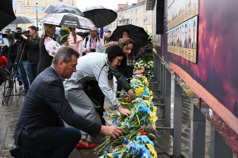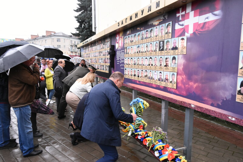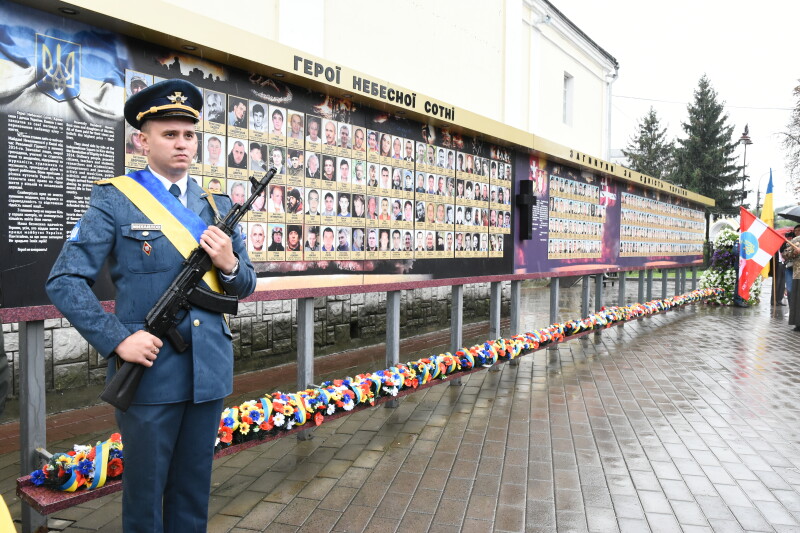 Урочистості продовжились покладанням квітів до пам’ятного фотостенду «Герої Небесної Сотні – Загинули за Єдність України».