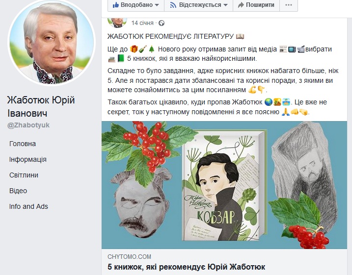 Сторінка Юрія Івановича Жаботюка у «Фейсбуку» здобула чималу популярність.