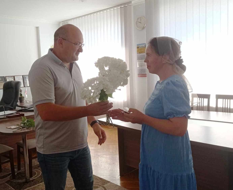 Державні нагороди – посвідчення про присвоєння почесного звання України «Мати-героїня» та нагрудні знаки вручив двом жінкам громади Любешівський селищний голова Олег Кух.
