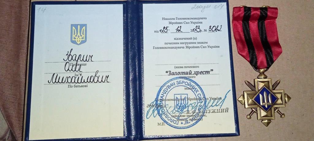 Двох військовослужбовців з Боратинської громади нагородили почесною відзнакою – нагрудним знаком Головнокомандувача ЗСУ «Золотий хрест». Нагороди отримали житель села Вербаїв Олег Зварич та житель села Мстишин Володимир Цапук.