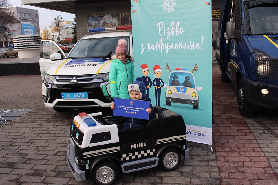 У Луцьку влаштували Різдво з патрульними, де діти і дорослі могли зробити фото та пограти у цікаві вікторини.