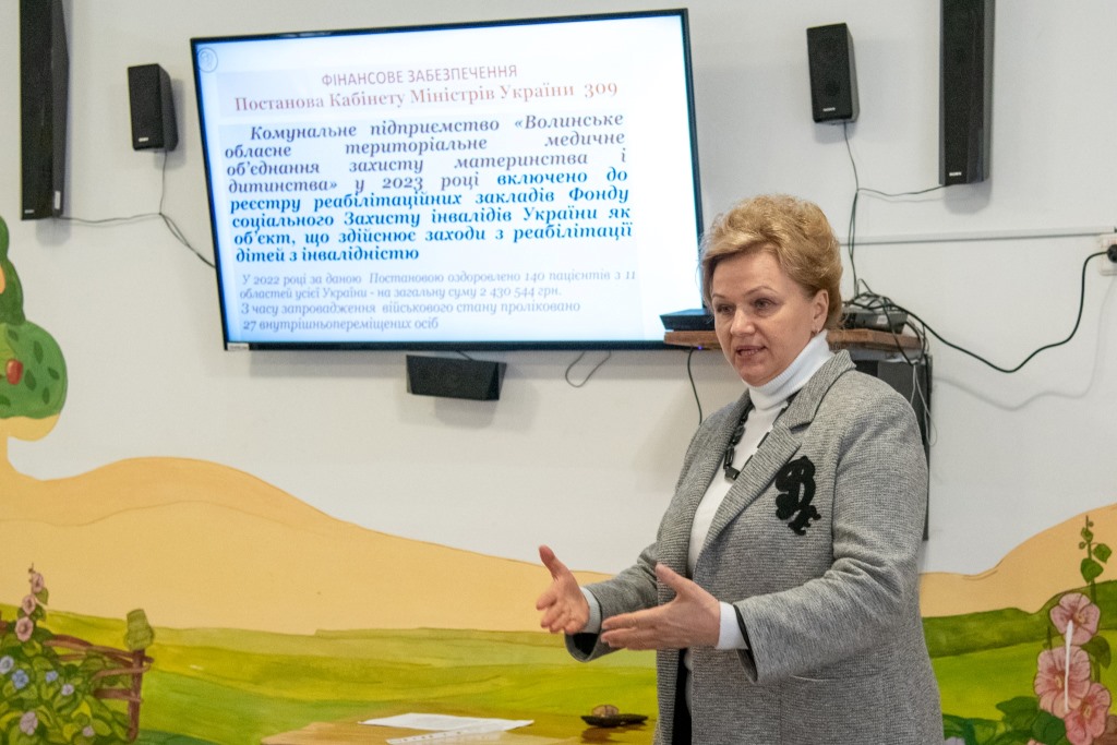 «Щорічно тут отримують медичну допомогу дві тисячі пацієнтів з Волині та інших регіонів України. Ми зосередились на тому, аби організувати повноцінну реабілітацію не тільки для діток, але й для їхніх батьків, адже усі ті, хто доглядають за дітьми-інвалідами, мають проблеми зі здоров’ям. Тому для них також передбачені процедури та харчування. Допомога пацієнтам надається безкоштовно, адже медичне об’єднання працює за державною програмою медичних гарантій», – розповідає генеральна директорка КП «Волинське обласне територіальне медичне об’єднання захисту материнства і дитинства» Ірина Горавська.
