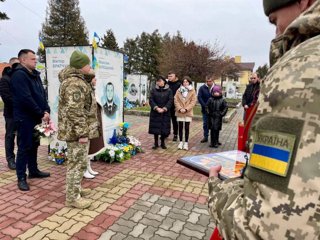 На Алеї Герої у Нововолинську, біля портрета Максима Білецького, відзнаку вручили його мамі та дружині.