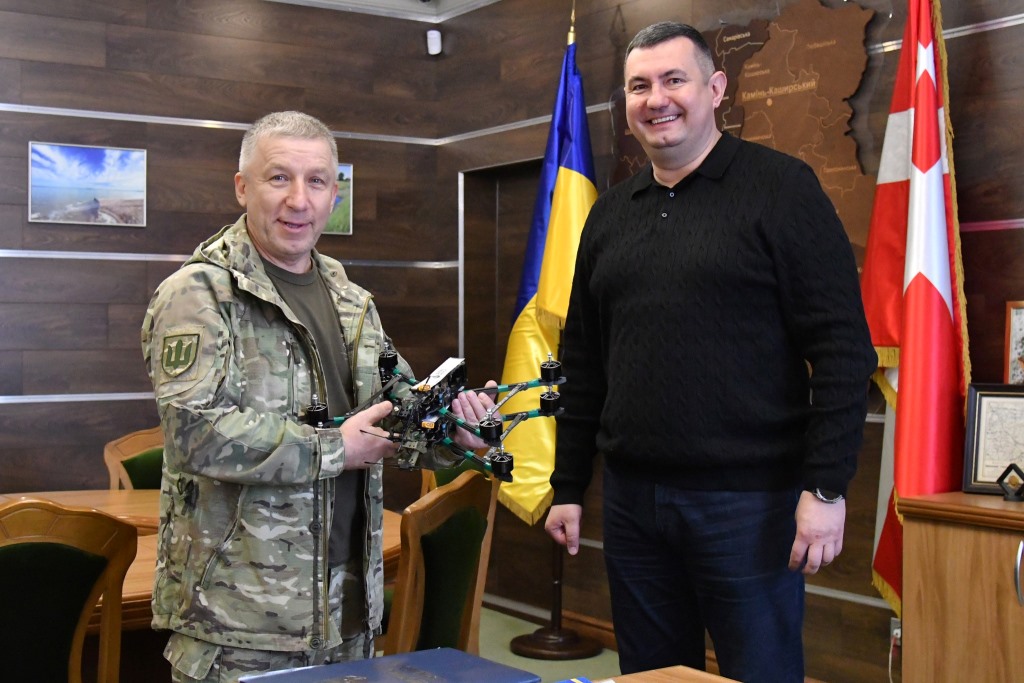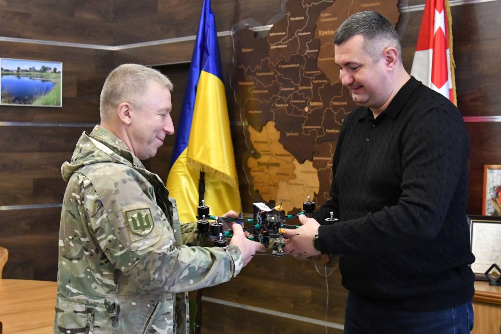 Натомість голова Волиньради спільно з керівником Волинського інституту післядипломної педагогічної освіти Петром Олешком вручив FPV-дрони-«десятки», які характеризуються підвищеною здатністю навантаження, великою дальністю польоту та високою швидкістю. До складу вантажу, який підготували волиняни, також увійшли зарядні станції, павербанки і тепловізійні плащі.