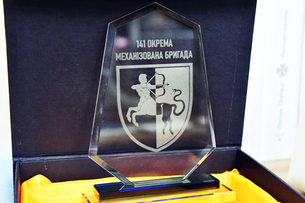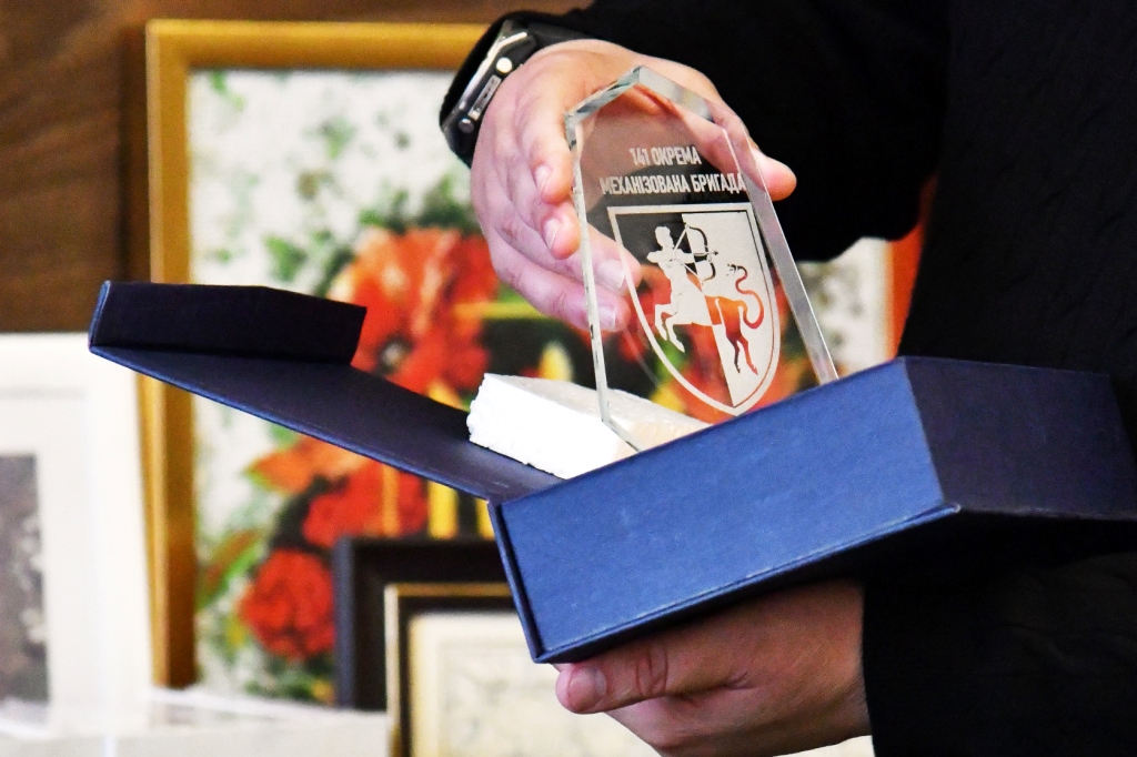 На Волинь командир мотопіхотного батальйону 141-ої ОМБр Володимир Забрідний прибув із подвійною місією – подякувати волинянам за підтримку і забрати черговий вантаж допомоги. Григорію Недопаду він подарував прапор бригади та пам’ятний гравертон.