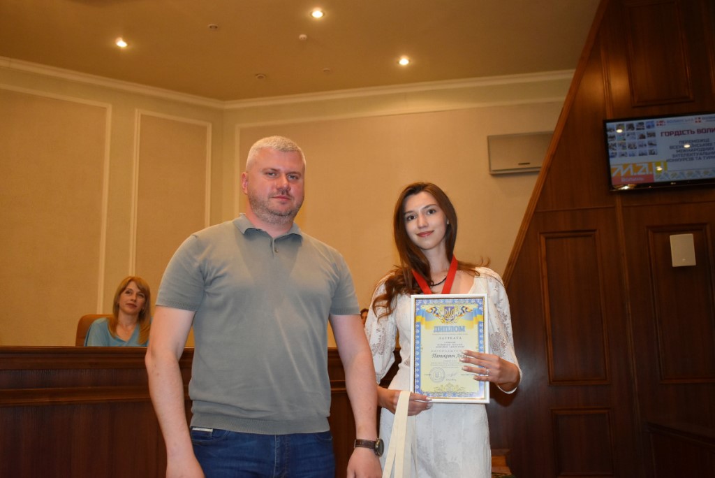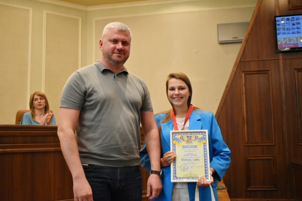 – Вікторії Скляренко, учениці 11 класу Луцького ліцею № 14. Лучанка зайняла 3-ті місця у секції теоретичної фізики, секції екологічно-безпечних технологій та ресурсозбереження Всеукраїнського конкурсу-захисту науково-дослідницьких робіт, а також у Всеукраїнському конкурсі молодіжних науково-технічних проєктів «InventorUA».