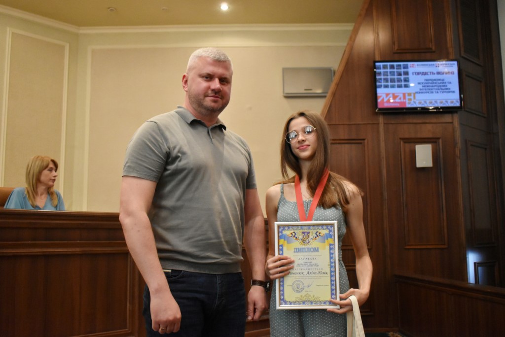– Аліні Сичук, учениці 11 класу Луцького ліцею № 14 імені Василя Сухомлинського. Дівчина здобула золоту нагороду Міжнародного інноваційного шоу INOVA м. Загреб (Хорватія) та посіла ІІ місце на Всеукраїнському конкурсі молодіжних науково-технічних проєктів «InventorUA».