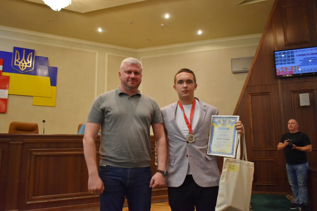 – Тарасу Гембіку, учню 11 класу Камінь-Каширського ліцею № 1 імені Євгена Шабліовського. Він отримав золоту нагороду Міжнародного інноваційного шоу INOVA м. Загреб (Хорватія) у категорії «Програмування».
