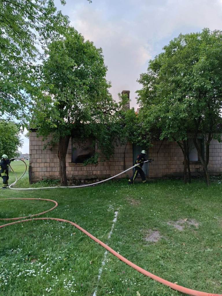 О 15:18 надійшло повідомлення про пожежу в господарській будівлі в с. Видричі. Горіння, ймовірно, спричинене влучанням грозового розряду, охопило покрівлю, поширилося всередину будівлі й перекинулося на сіно, що там зберігалося. Не пощадило полум’я й двох свиней, які були зачинені всередині.