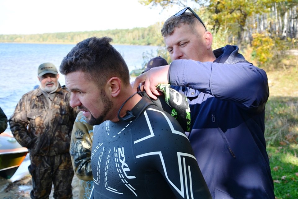 Сам заплив розпочали удвох, але вже на швидкісному човні, наздоганяючи, до чоловіків приєднався ще один плавець із Володимира-Волинського — Сергій. Лучанин уже вчетверте плив з парламентарем, але цього разу пройшов лише половину дистанції. Його костюм не відповідав погоднім умовам. З іншим чоловіком депутат досі не був знайомий, вони зустрілись завдяки спільному захопленню.