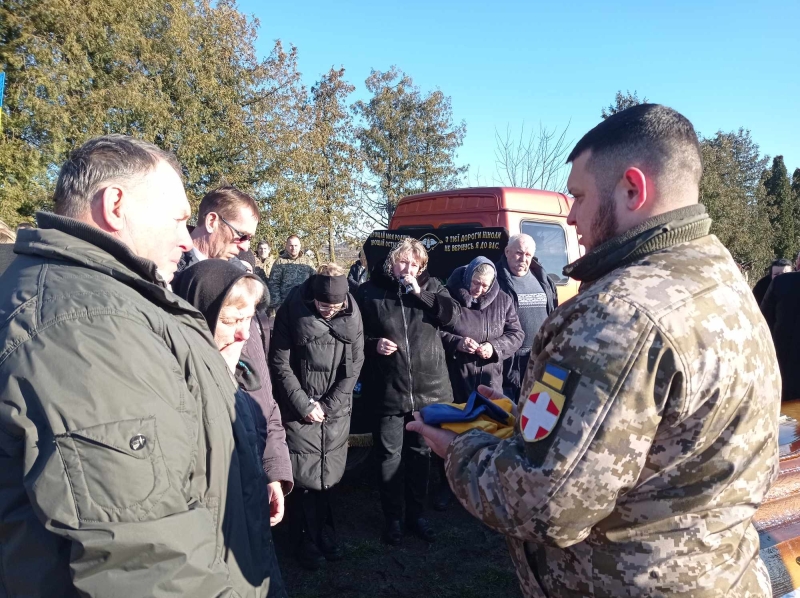 Востаннє нашому земляку віддали військові почесті. Рідним Героя вручили Державний Прапор України, який почесна варта зняла з домовини. На честь солдата пролунав трикратний стрілецький салют…
