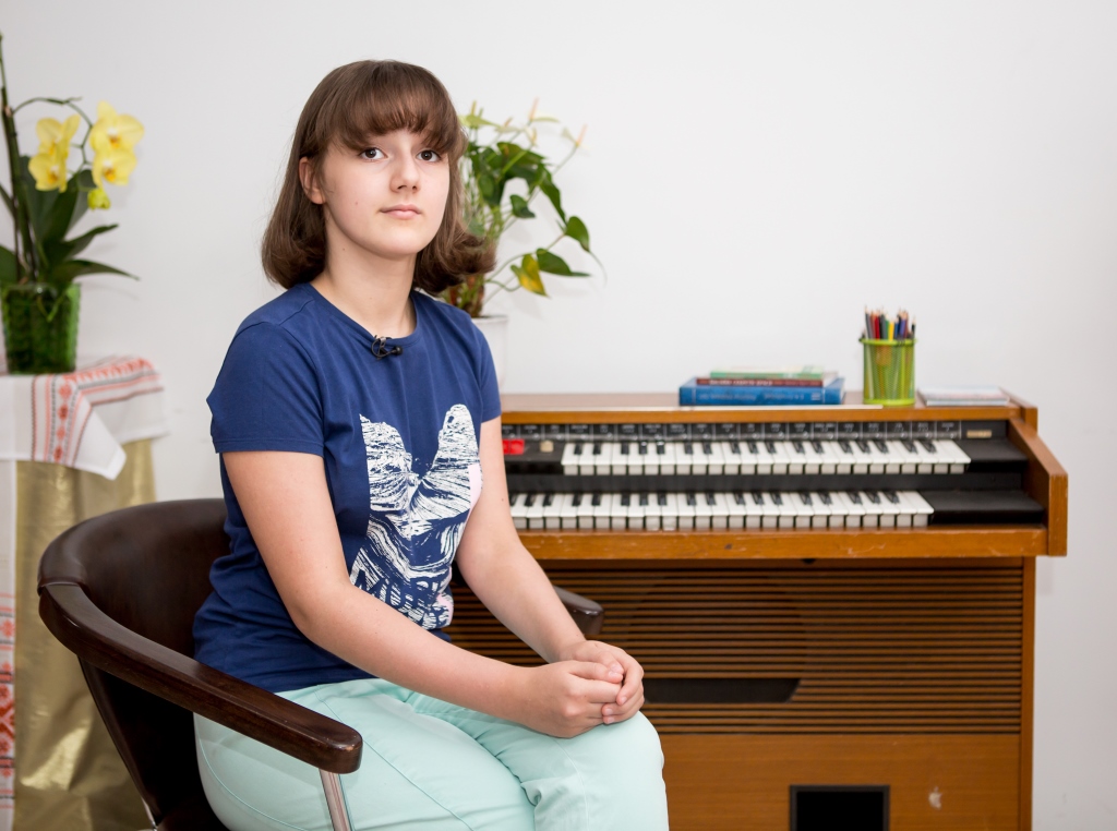 Поліна, якій виповнилося десять, самостійно вивчила англійську мову за допомогою інтернету. І зараз вивчає українську саме через англійську мову. За півроку вона навчилася грати на піаніно, і сама почала писати музику. При цьому вона для написання музики використовує не ноти, а графічні символи — своєрідний аналог нот.