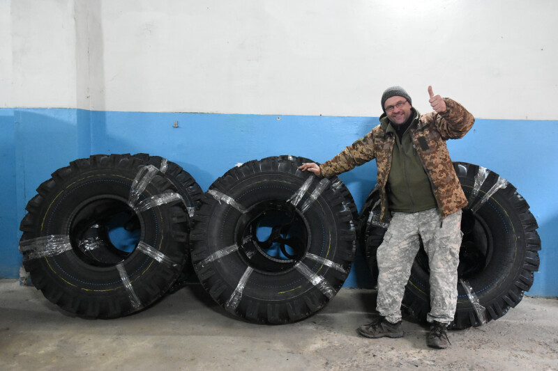 Із Луцька бійцям 14 ОМБр передали шини для вантажного автомобіля