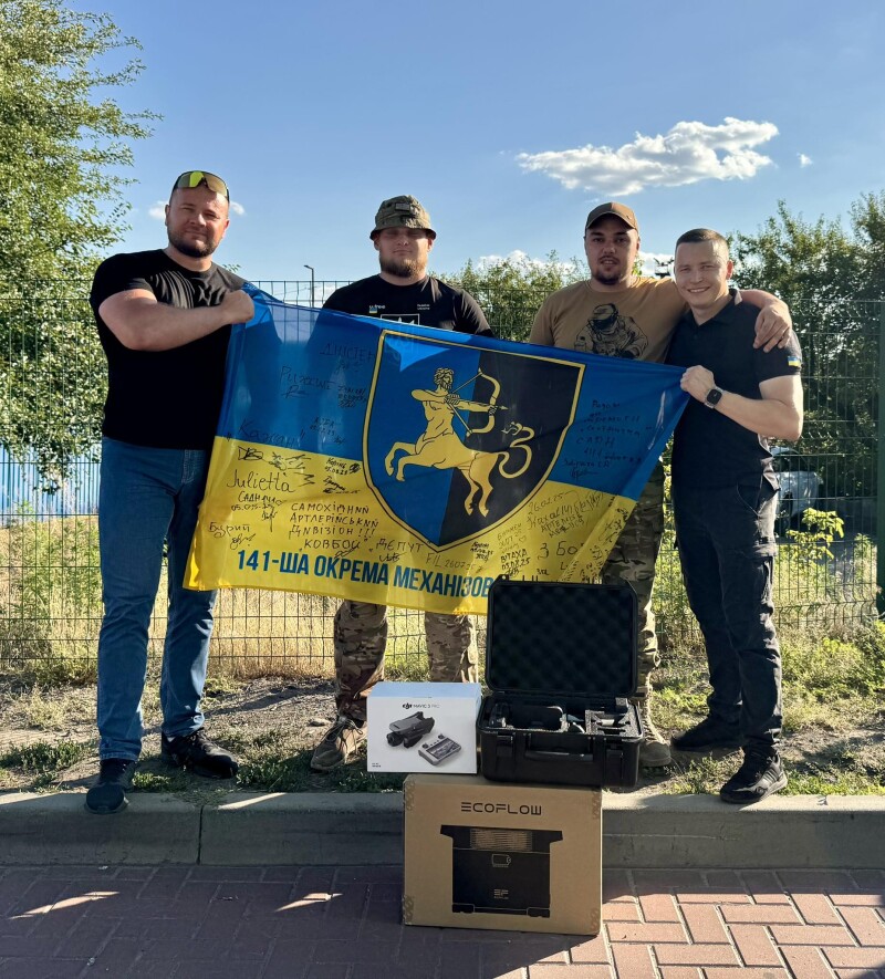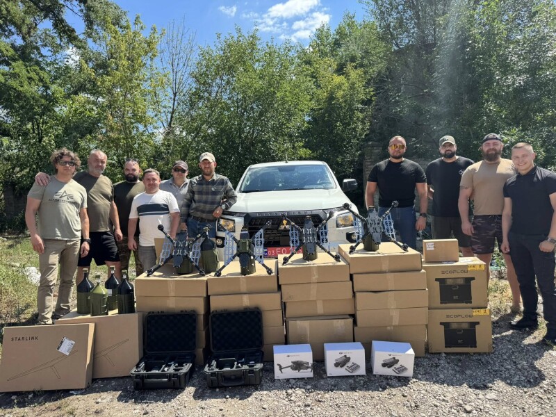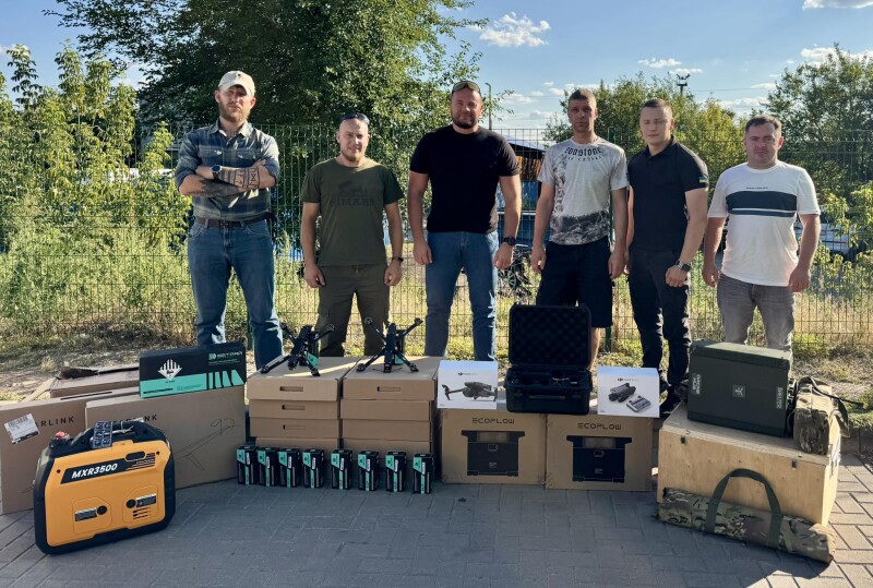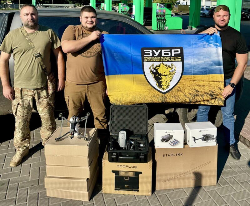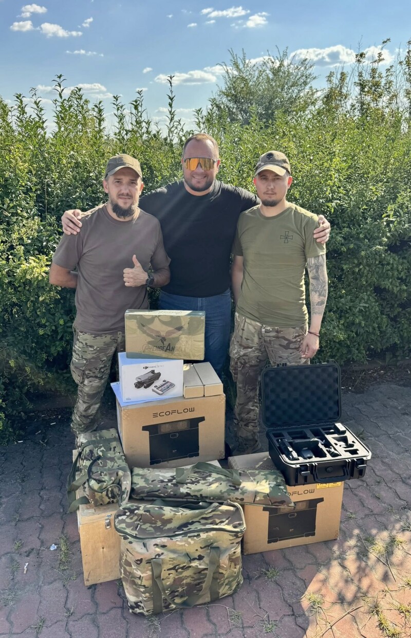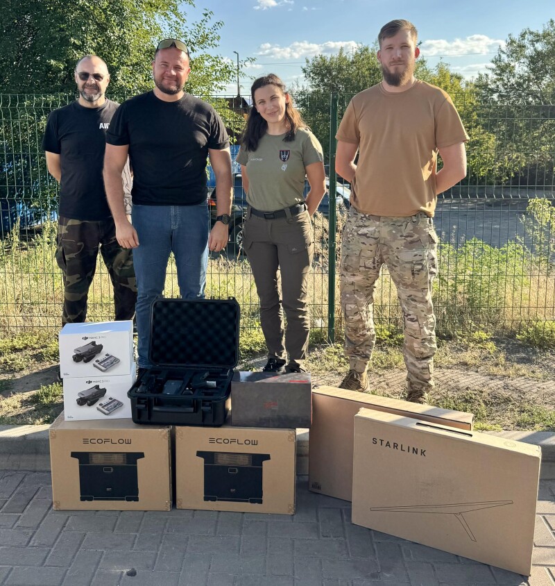 Цього разу для хлопців передали чотири нові автомобілі Mitsubishi L200, нічні та денні квадрокоптери Mavic, FPV дрони звичайні на оптоволокні, системи Starlink, зарядні станції EcoFlow, РЕБи, планшети, монокуляри нічного бачення та багато інших речей на загальну суму близько 20 мільйонів гривень.