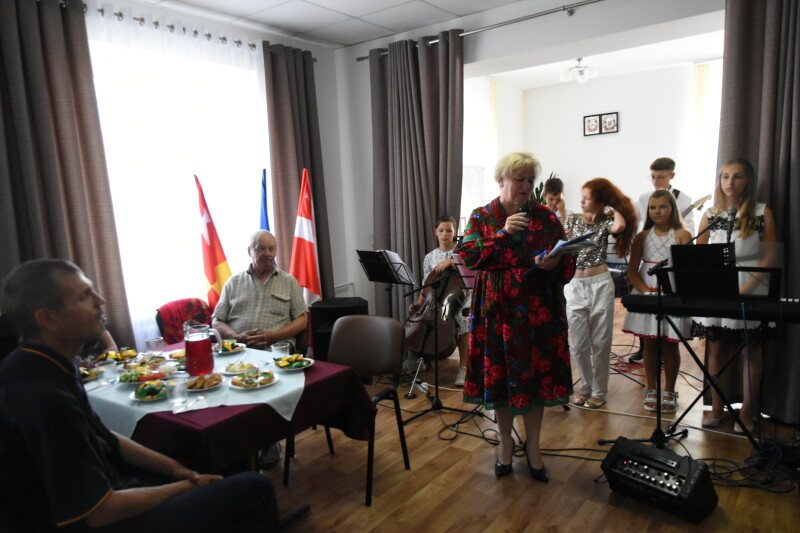 Крім пакунків із продуктами, працівники центру приготували для підопічних частування та концертну програму. Патріотичні пісні для отримувачів послуг виконав музичний дитячий колектив церкви Введення Пресвятої Богородиці Волинської єпархії ПЦУ.