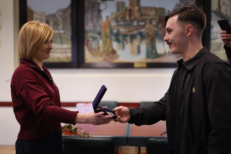 Катерина Шкльода вручила відзнаку «Почесний громадянин міста Луцька» українському пілоту-винищувачу KARAYA