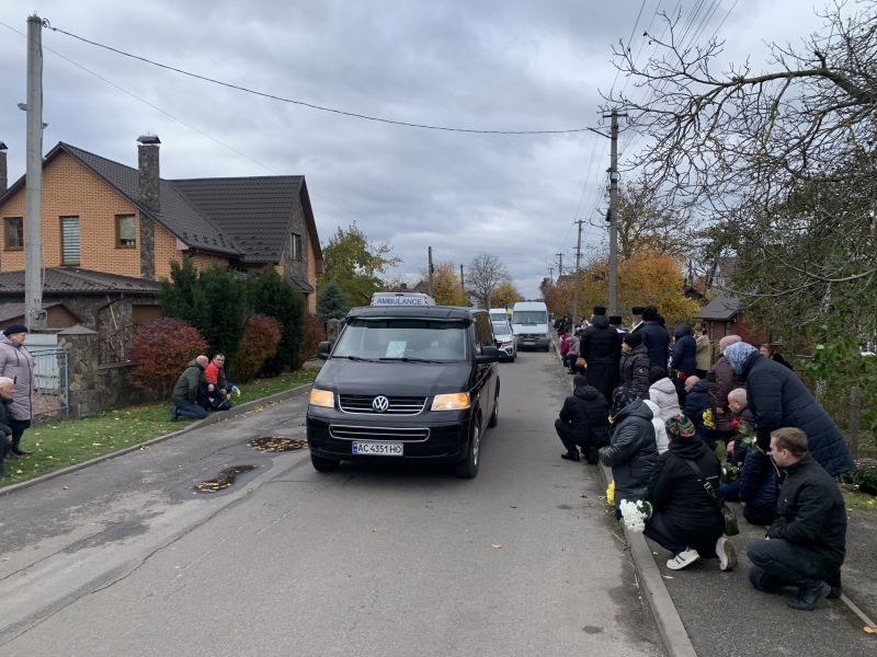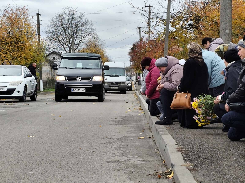 Скорботний кортеж «на щиті» ківерчани зустріли на перехресті вулиць Луцької та Пилипа Орлика. Траурна процесія з тілом воїна-захисника прослідувала вулицями міста до рідної домівки. На рідному подвір’ї в останнє воїна зустріла посивіла мати. Попрощалися з героєм родичі, друзі, знайомі, побратими. Вшанували пам’ять воїна-захисника очільники громади, вдячні земляки, схиливши голови та вклякнувши на колінах.