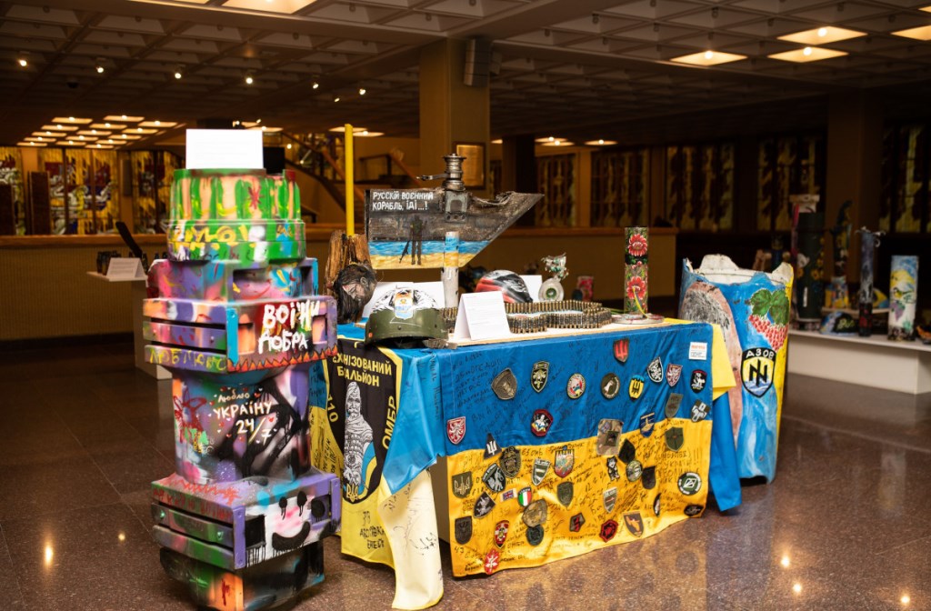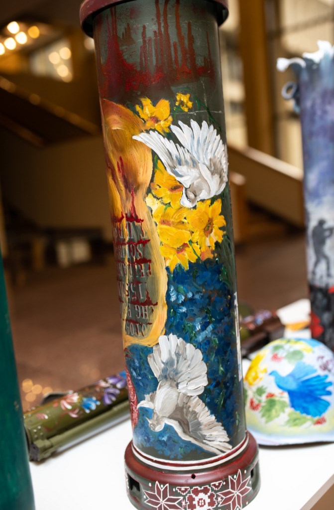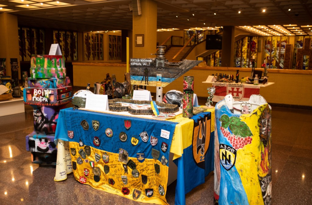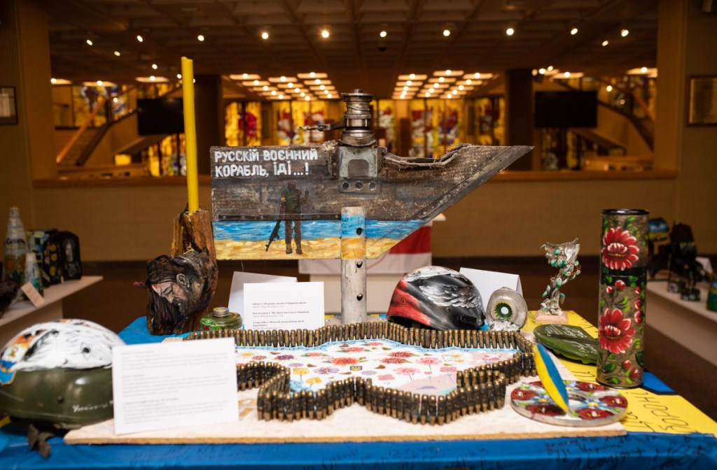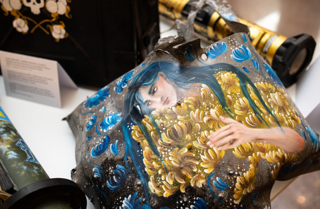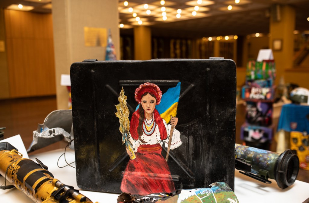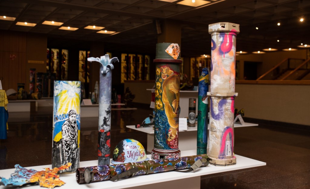 «Кольори сталі» з Волині: у Литовському парламенті відбулася виставка малюнків на уламках зброї