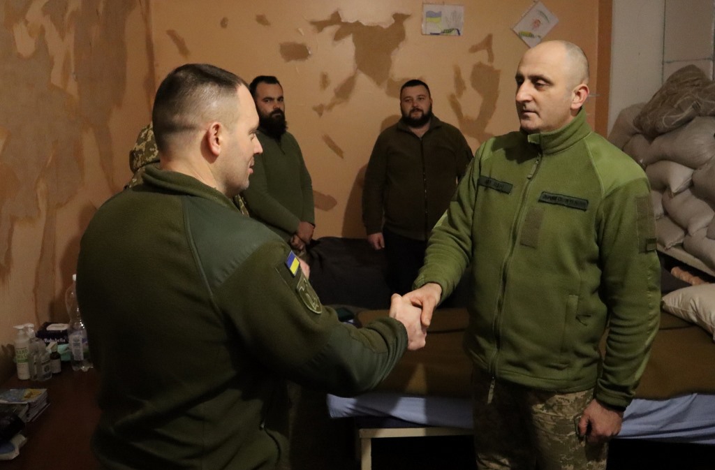 Командир 100 обр ТрО, полковник Руслан Ткачук вручив бригадні відзнаки персоналу медичної роти, а також бійцям, які відзначилися під час відбиття ворожих штурмів, а зараз проходять лікування.