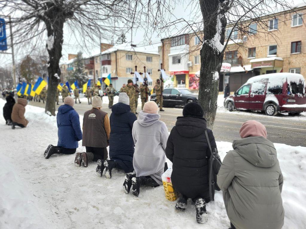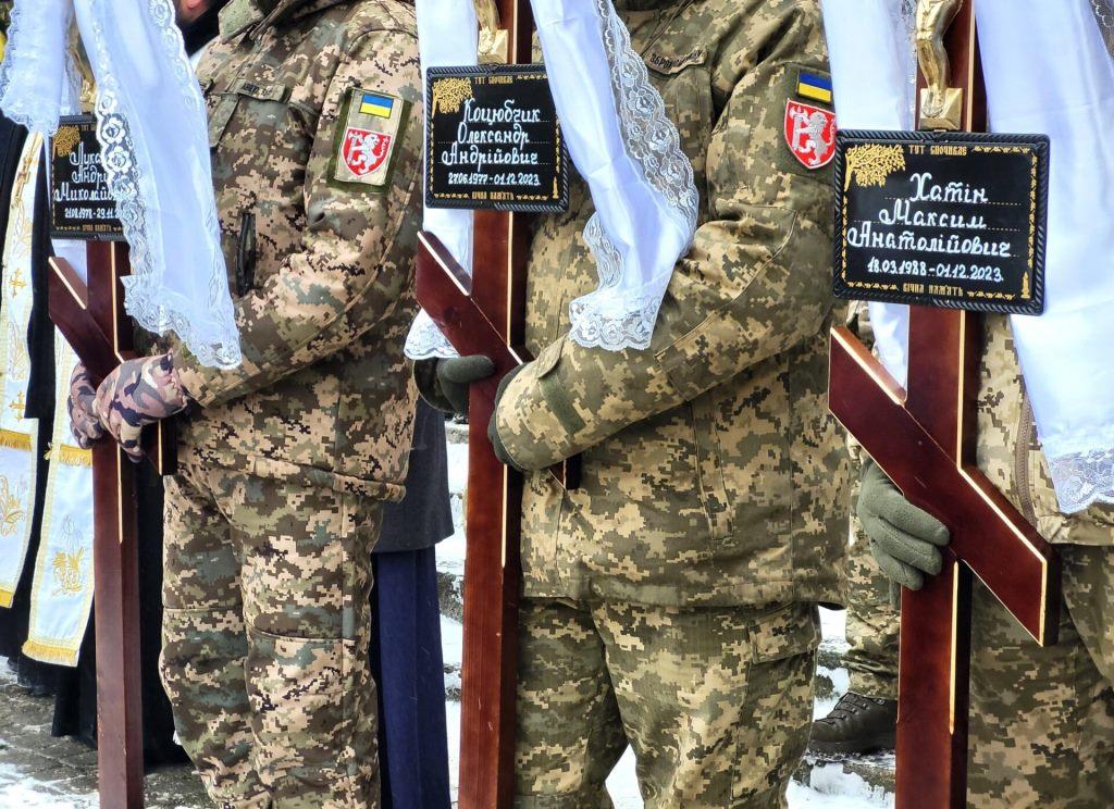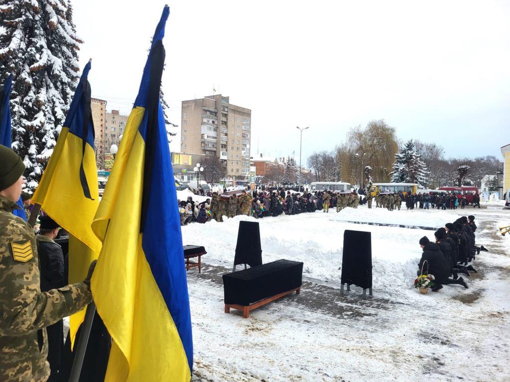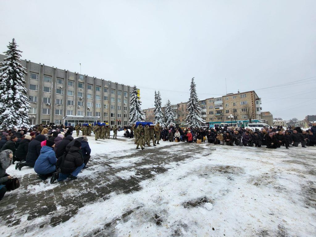 Чорний день у громаді. Три домовини, вкриті синьо-жовтими прапорами. Ніхто не стримує сліз. Люди підходять, стають на коліна, схиляють голови та мовчки прощаються з Героями – Андрієм Лукашуком, Максимом Хатіним, Олександром Коцюбчиком.