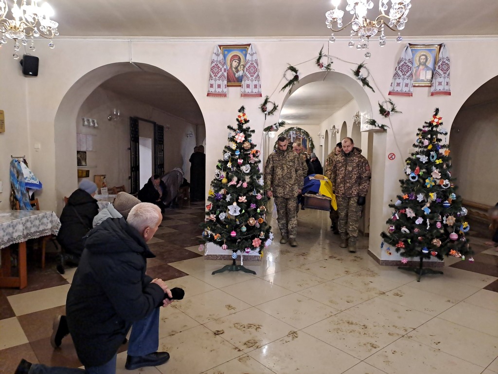 Сьогодні, 1 січня, Ковельська громада попрощалась із Захисником Романом Сахаруком. Ковельчани прийшли до собору Благовіщення Пресвятої Богородиці, щоб віддати останню шану Герою. Потому місія «на щиті» провела воїна вулицями міста до села Поворськ, де його відспівають ще у місцевому храмі. Поховають Героя на сільському кладовищі.